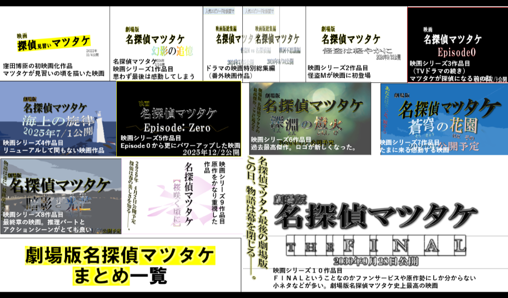 今回の作品も劇場版名探偵マツタケの傑作となっております。